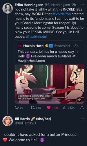 Voz de IA Charlie Morningstar (Hazbin Hotel) (new voice/Voice actor Erika Henningsen)